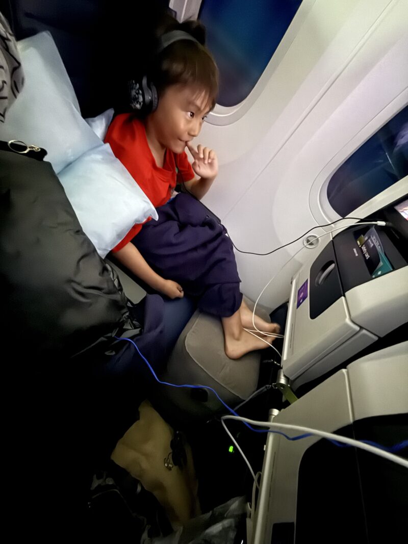 フットレストは持参して簡単に膨らませるので、ベルトサインが消えたら即セット!