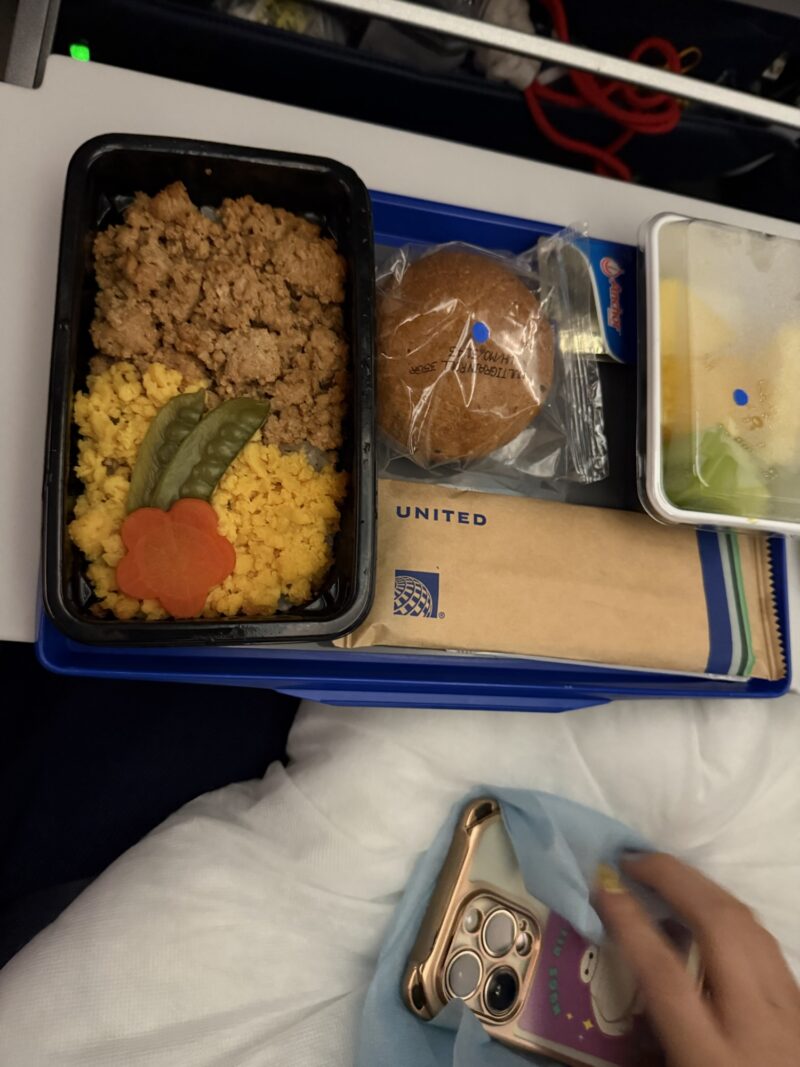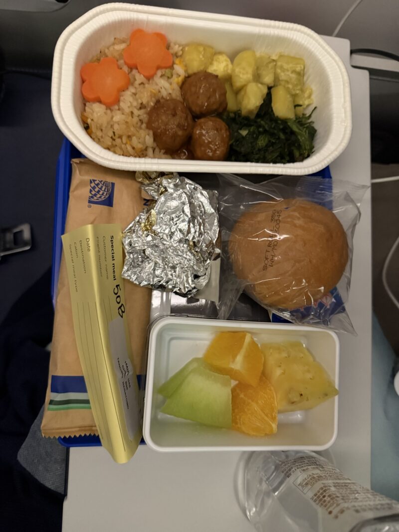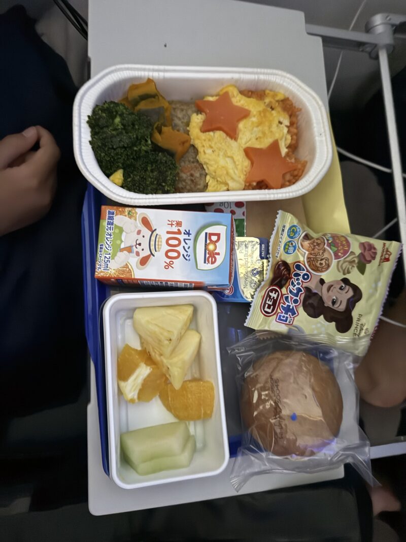着陸2時間前くらいに食べるご飯もキッズミールが先に到着。
