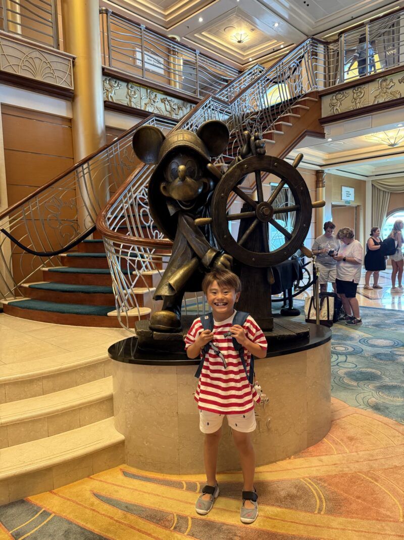 乗ったらとりあえず見たいものもたくさんあるけど、ミッキー船長像と写真撮影。