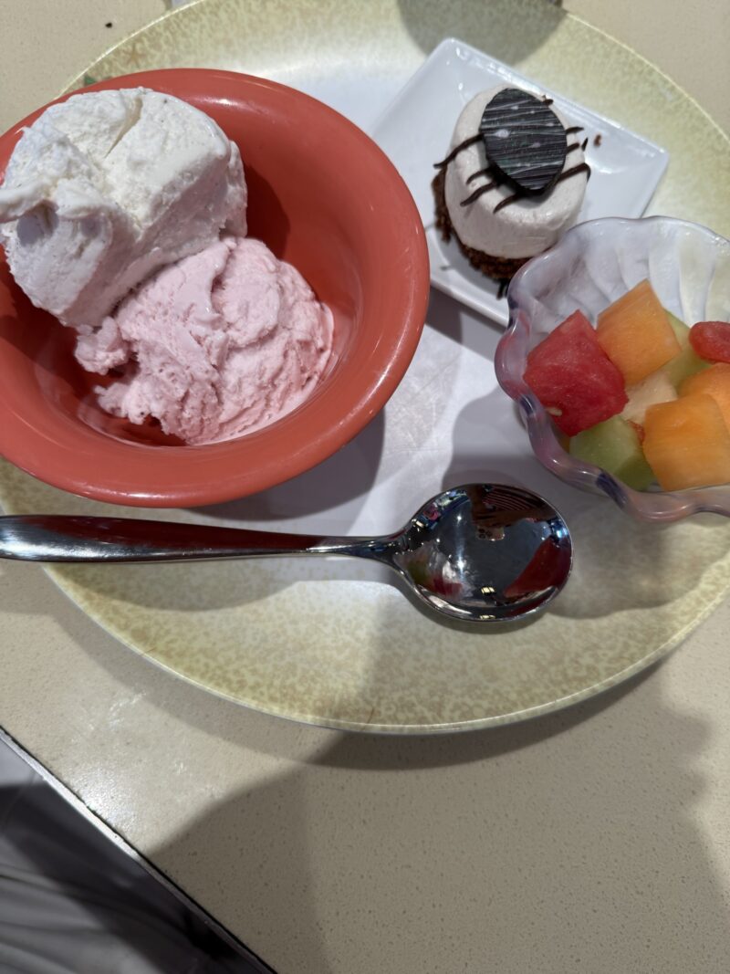 プールデッキでもソフトクリームが毎日食べ放題だから、アイスは1個にしたと話す息子を横目に私はしっかり2個(笑)